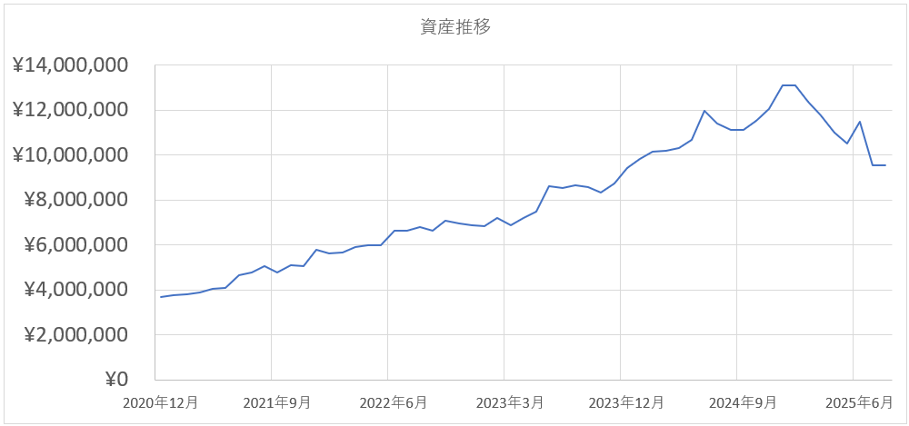 2025年8月末時点の資産は、9,538,651円となりました。