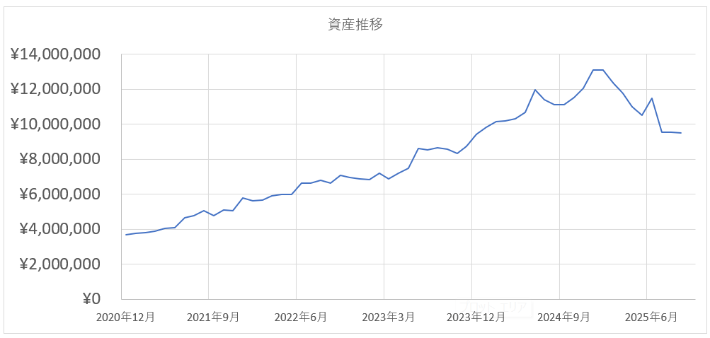 ちなみに2025年8月末時点の資産形成報告はこちらになっています。