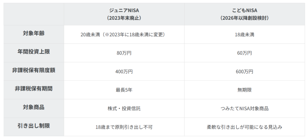 ジュニアNISAは2023年に廃止されたのですが、引き出し制限として18歳まで原則引き出し不可ていうのが厄介で加入者数が増えず廃止になりました。