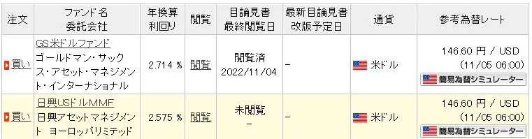 楽天証券で運用できるドルMMF商品はこちらになります。